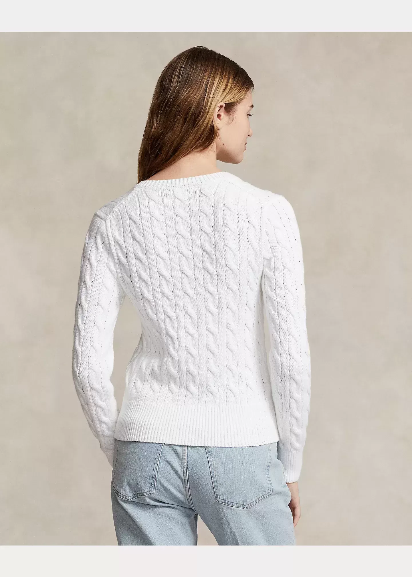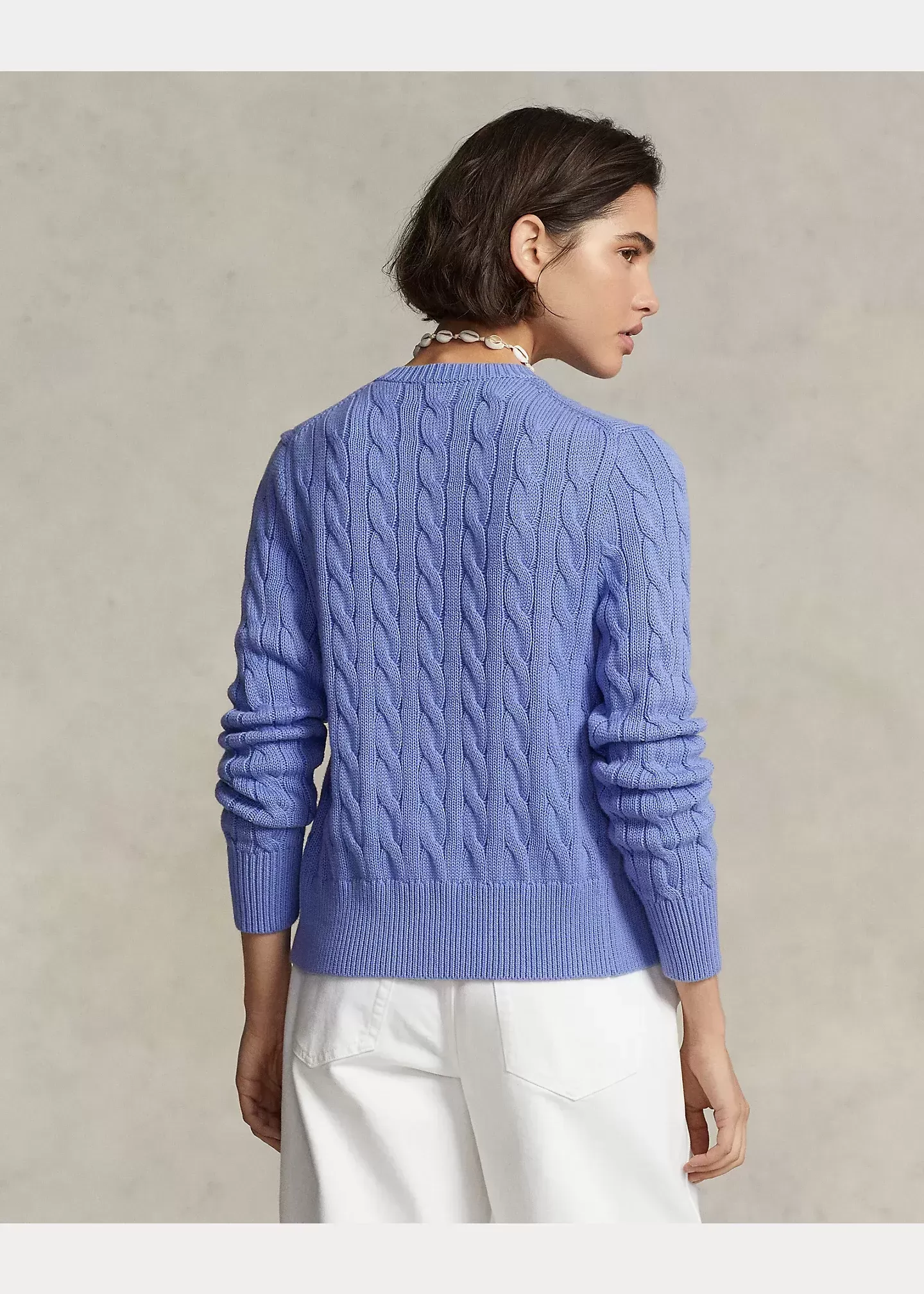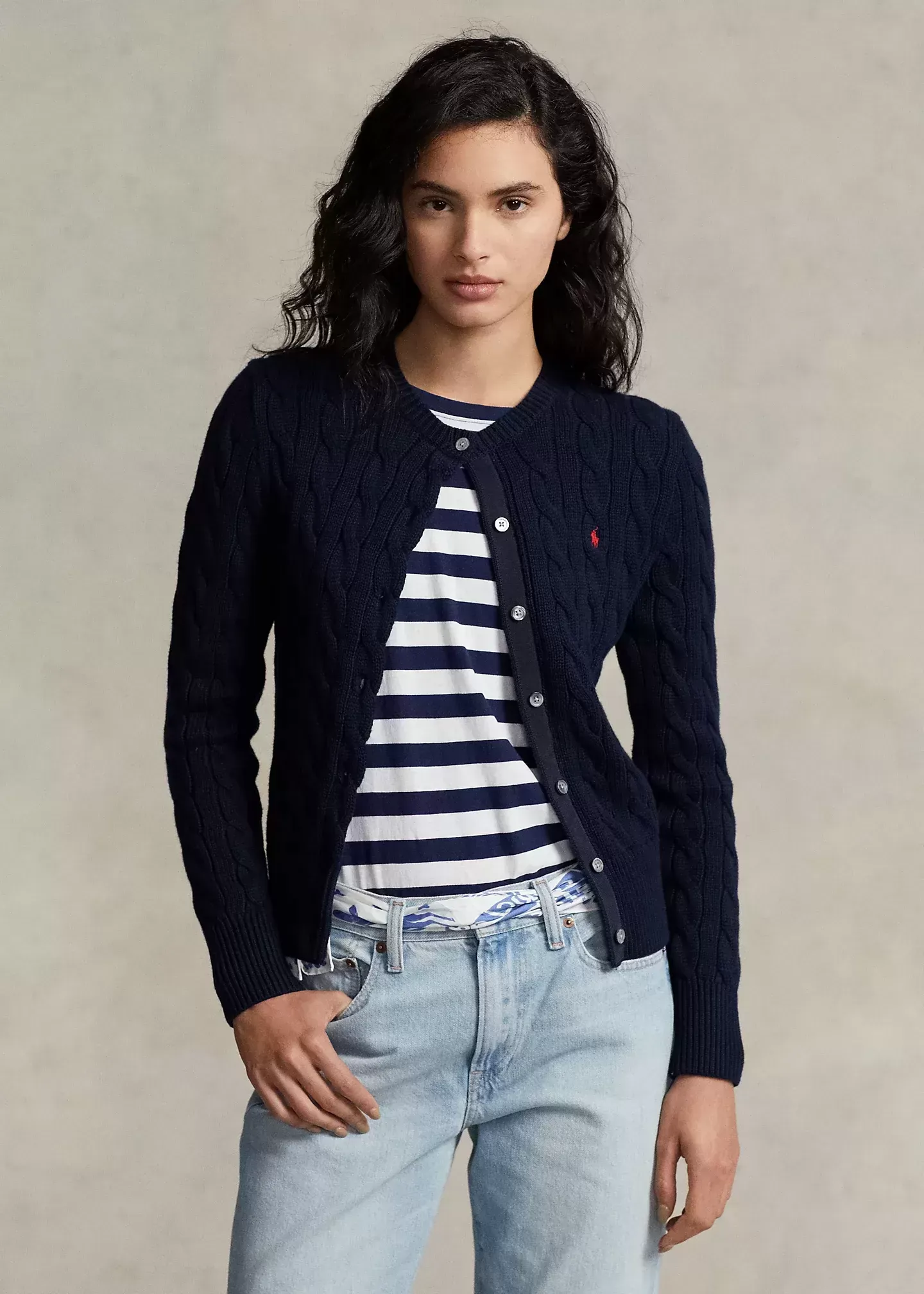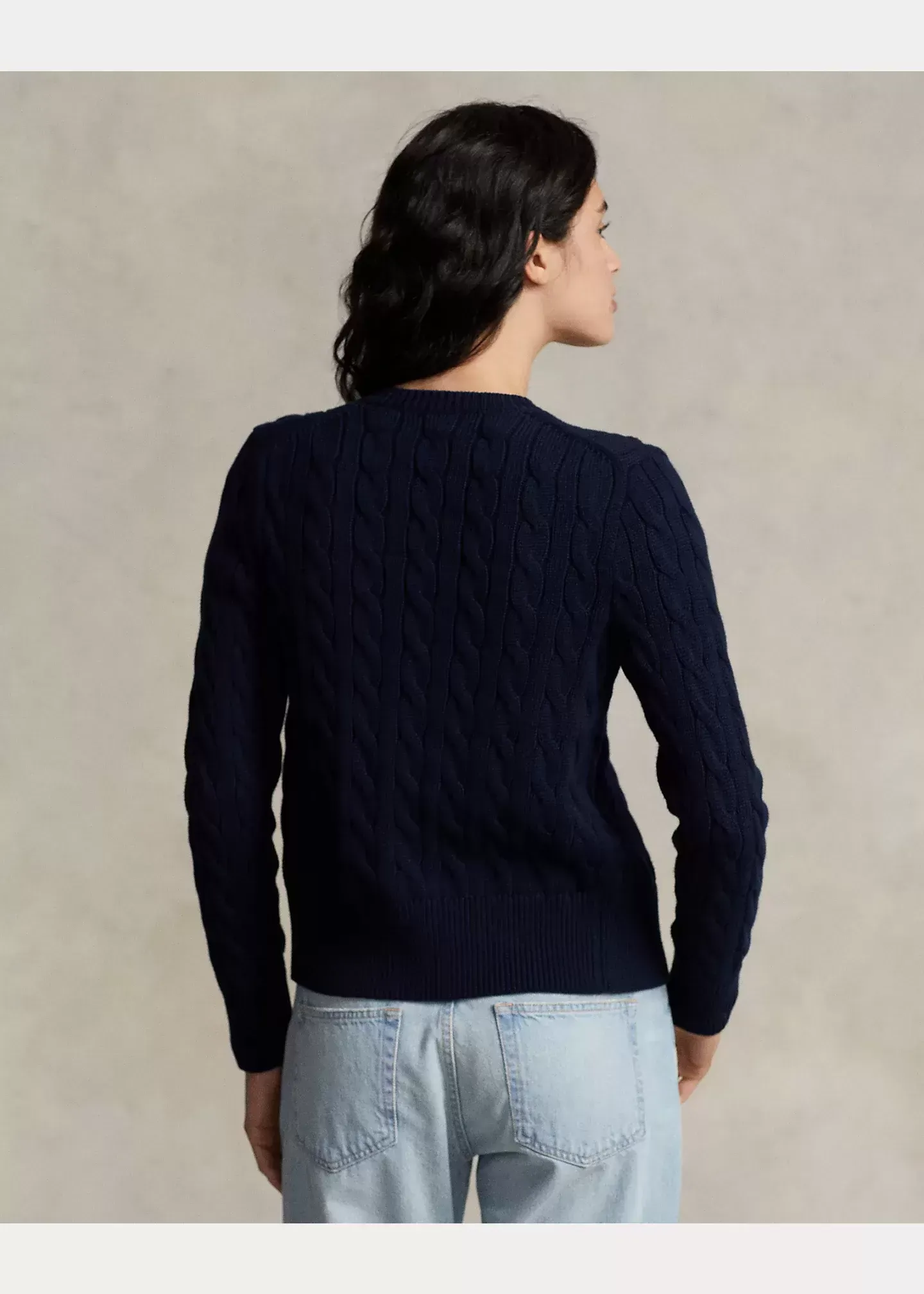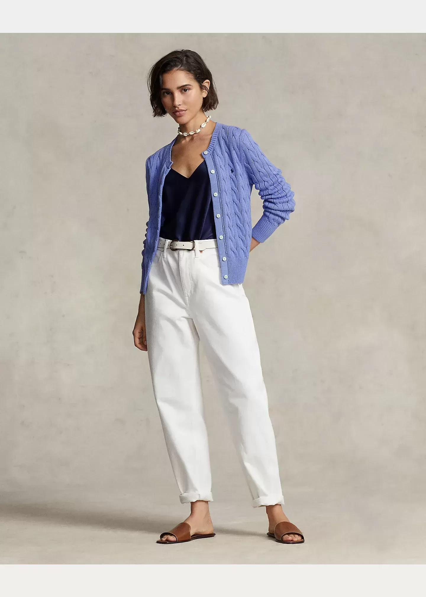 Cable-knit with pure cotton, this slim crewneck cardigan is finished with the signature embroidered Pony at the chest.