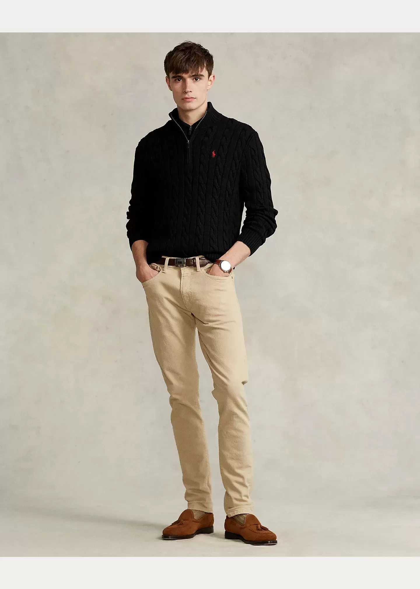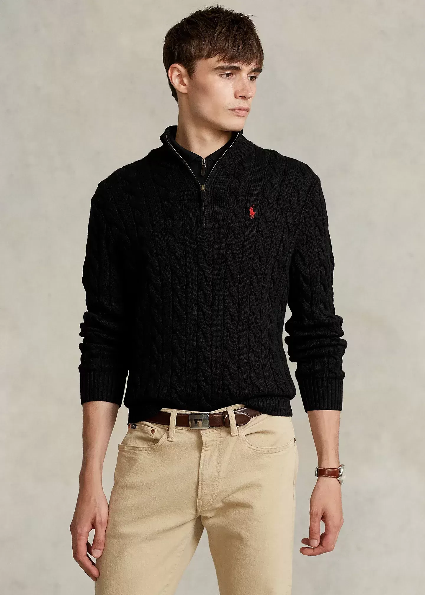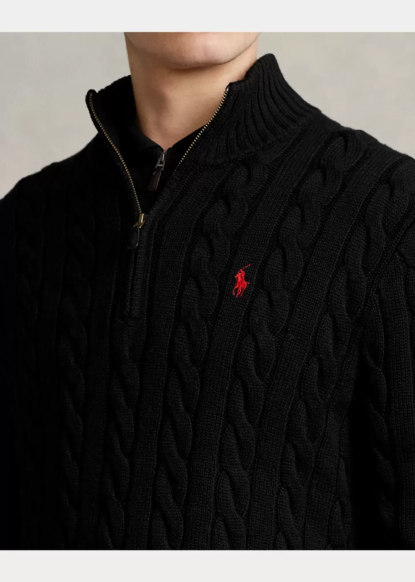 This chunky-knit cotton layer features our iconic cable design and signature embroidered Pony.