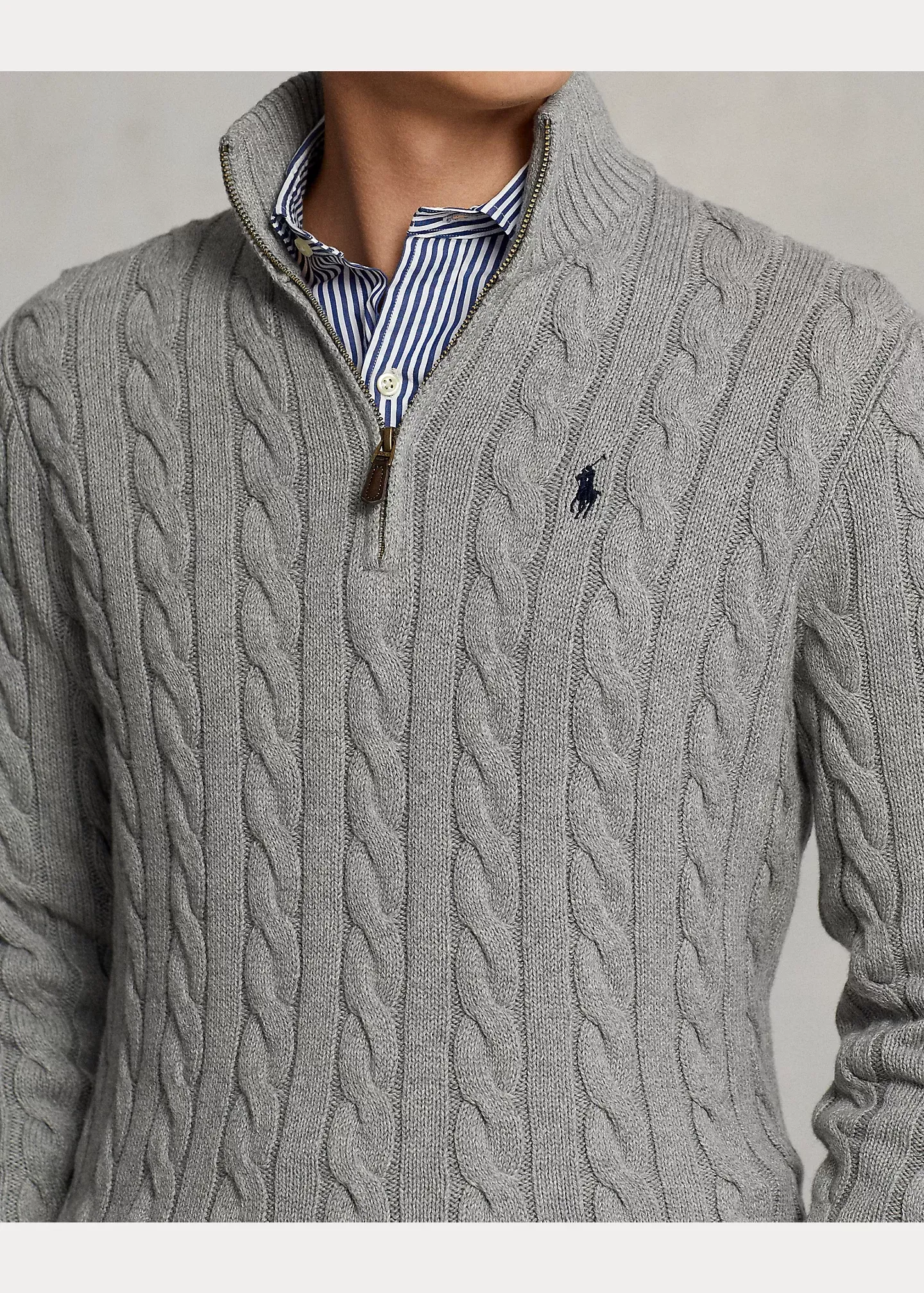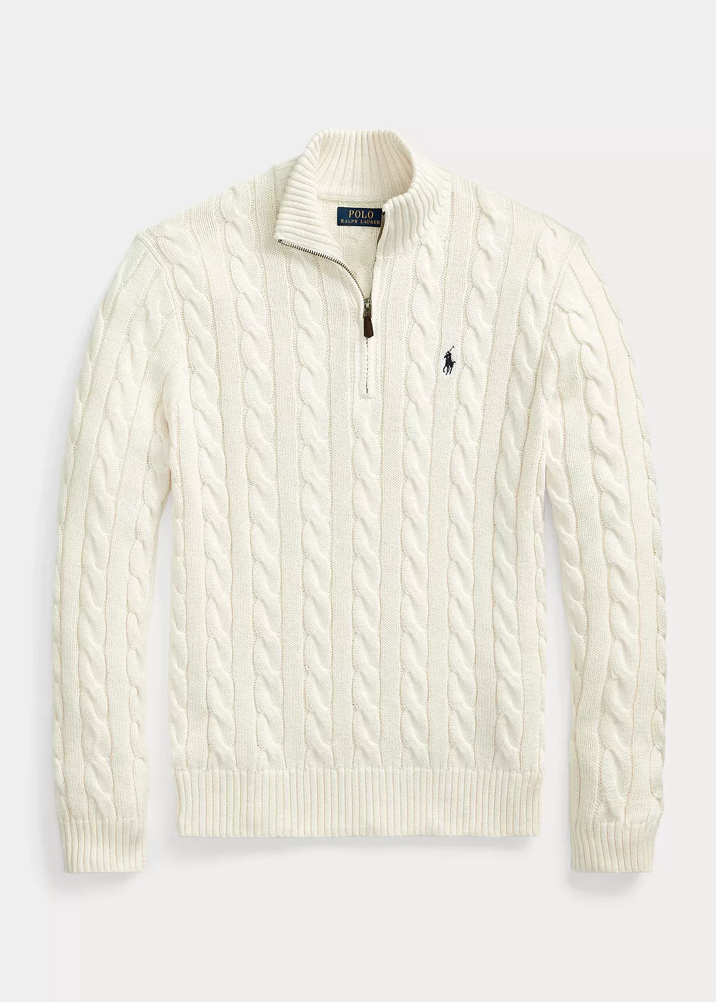 This chunky-knit cotton layer features our iconic cable design and signature embroidered Pony.