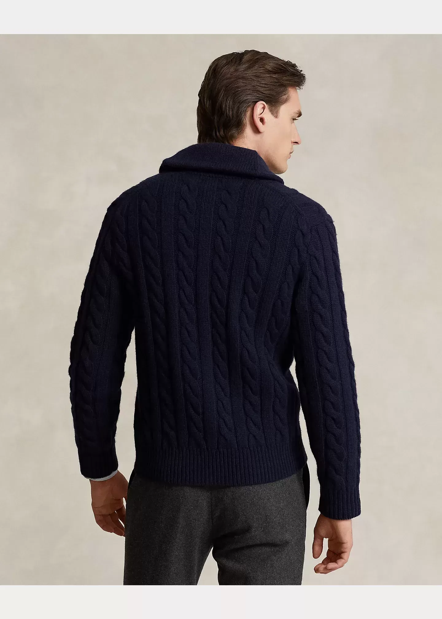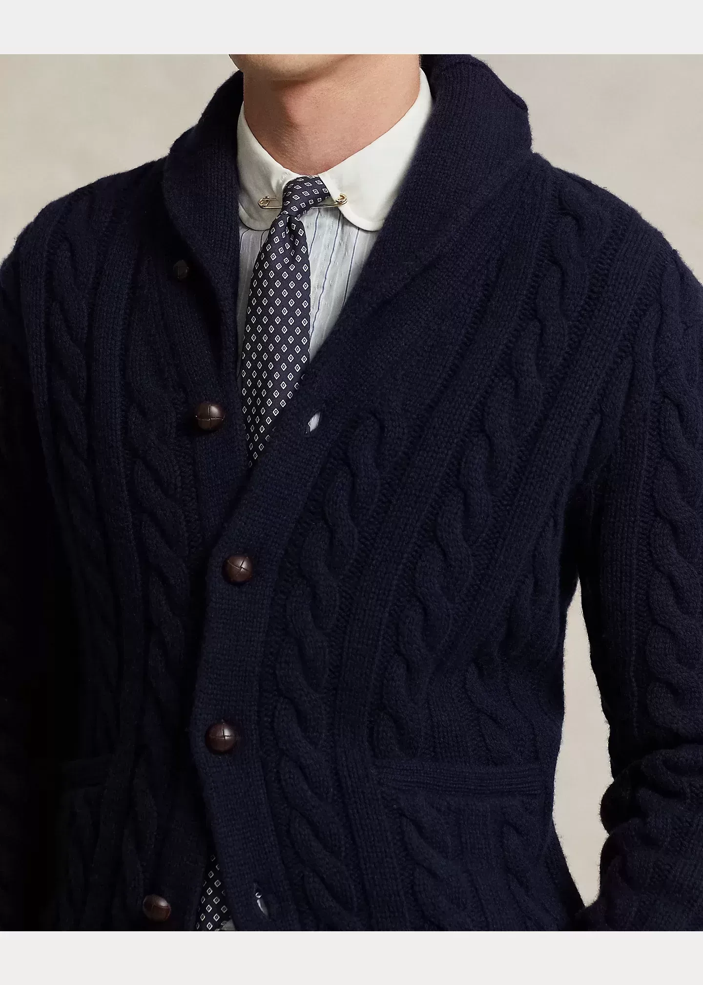 In a luxe blend of Italian wool and cashmere, this cardigan features our iconic cable-knit motif and braided leather buttons.