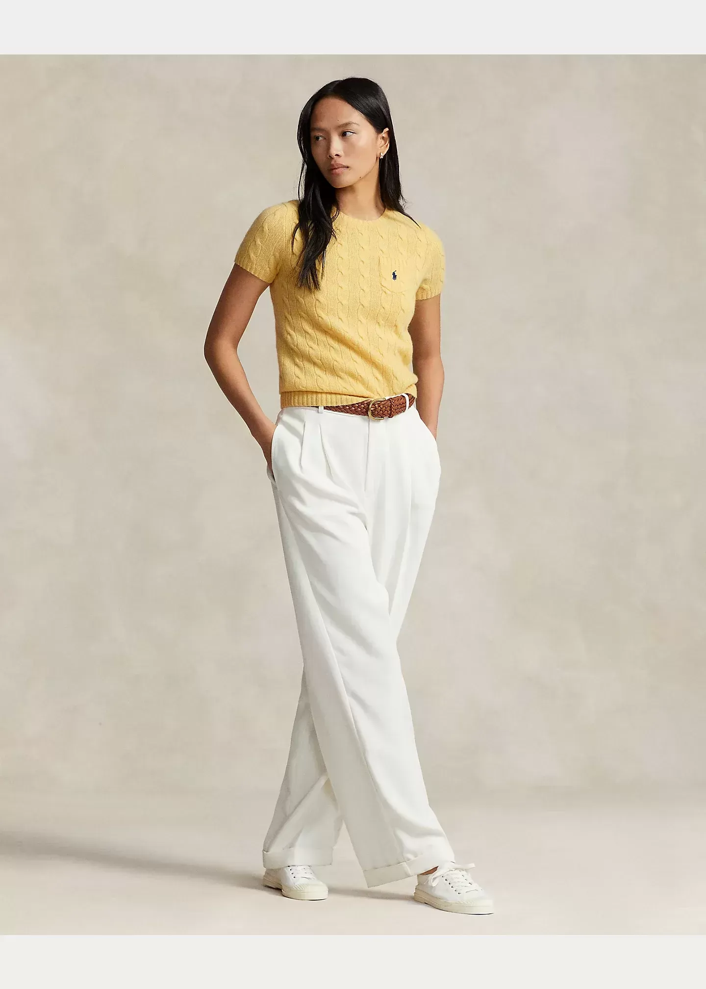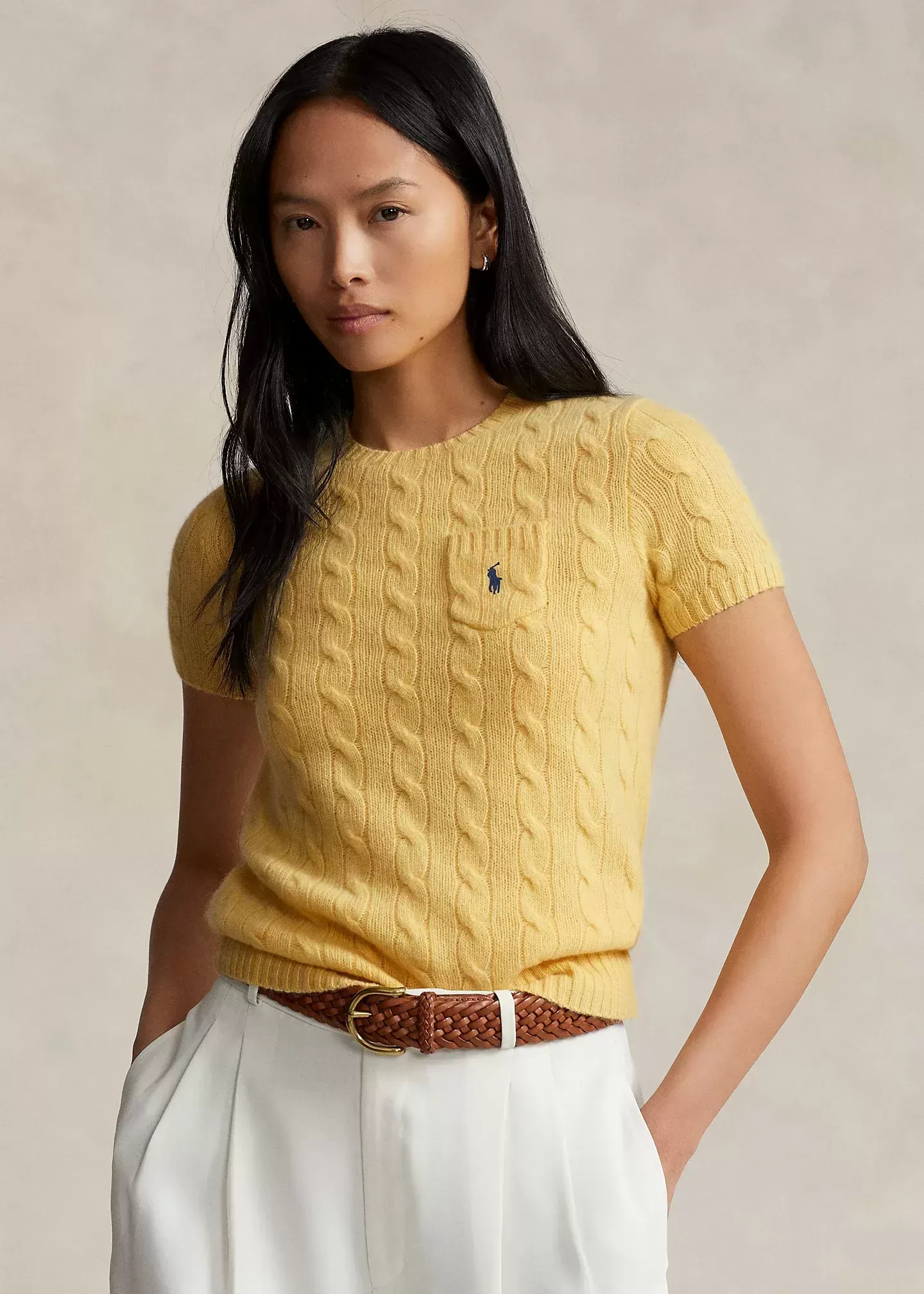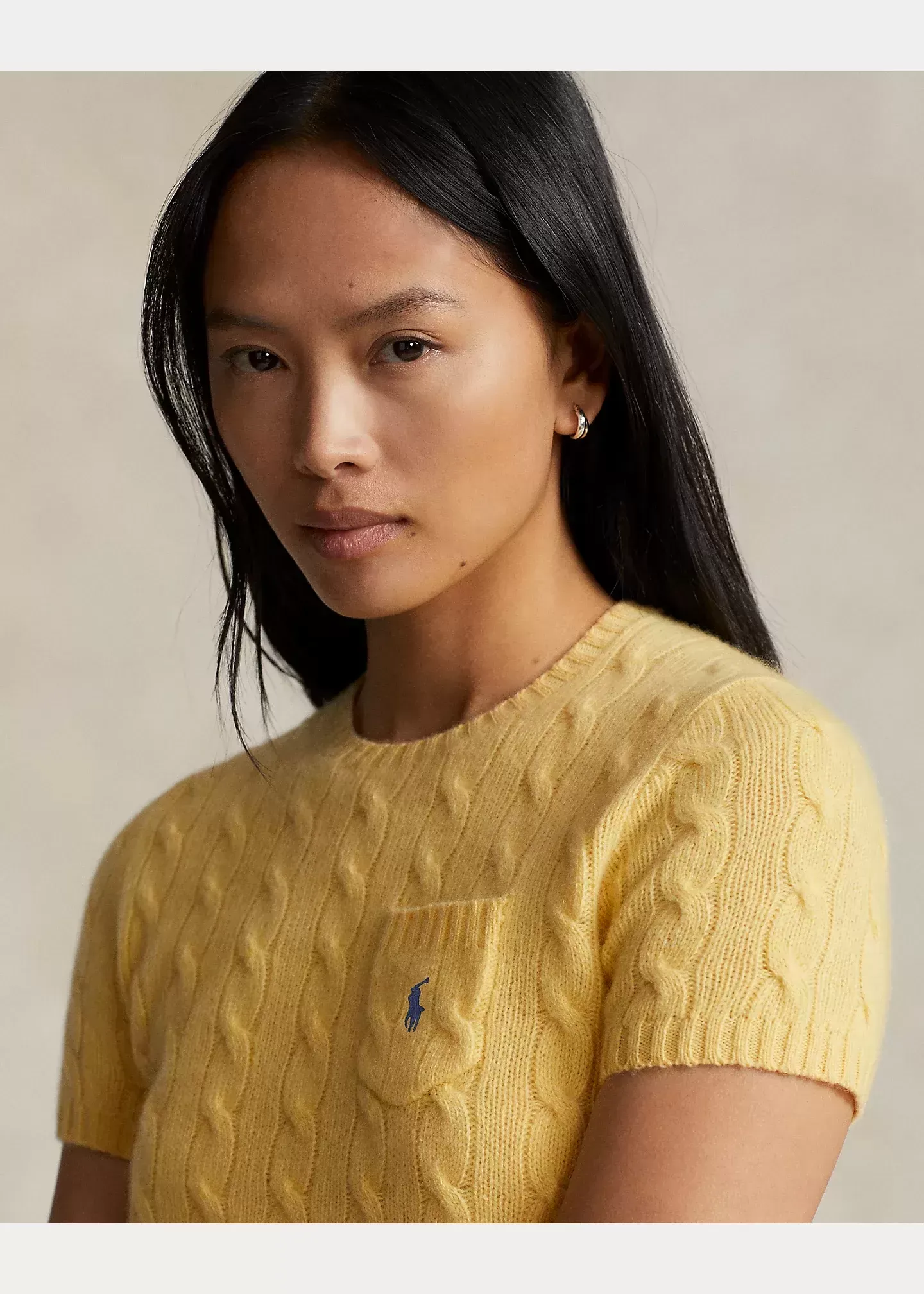 Crafted with a soft wool-and-cashmere blend, this short-sleeve sweater unites our iconic cable-knit construction with our signature embroidered Pony at the chest pocket.