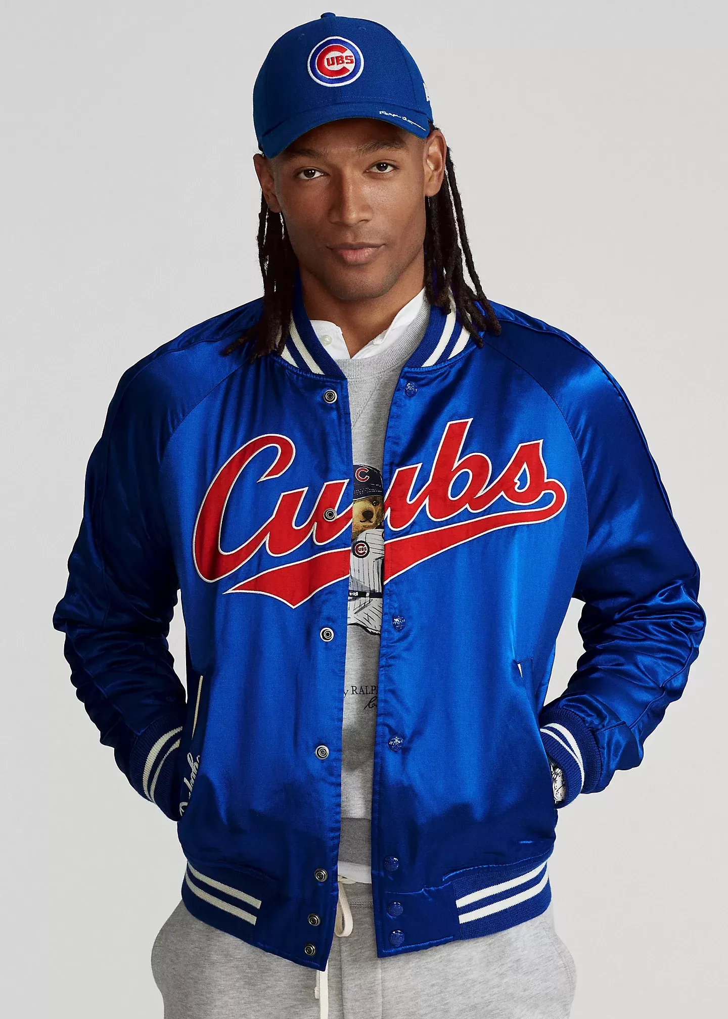 The game of baseball has been a passion of Mr. Lauren’s since his childhood days playing on the sandlot. This unisex satin jacket celebrates the traditions and style of America’s favorite pastime with the official logo of the Chicago Cubs™.