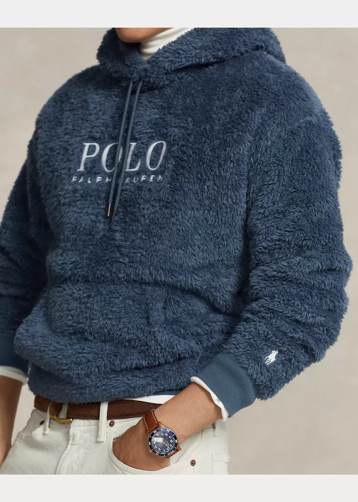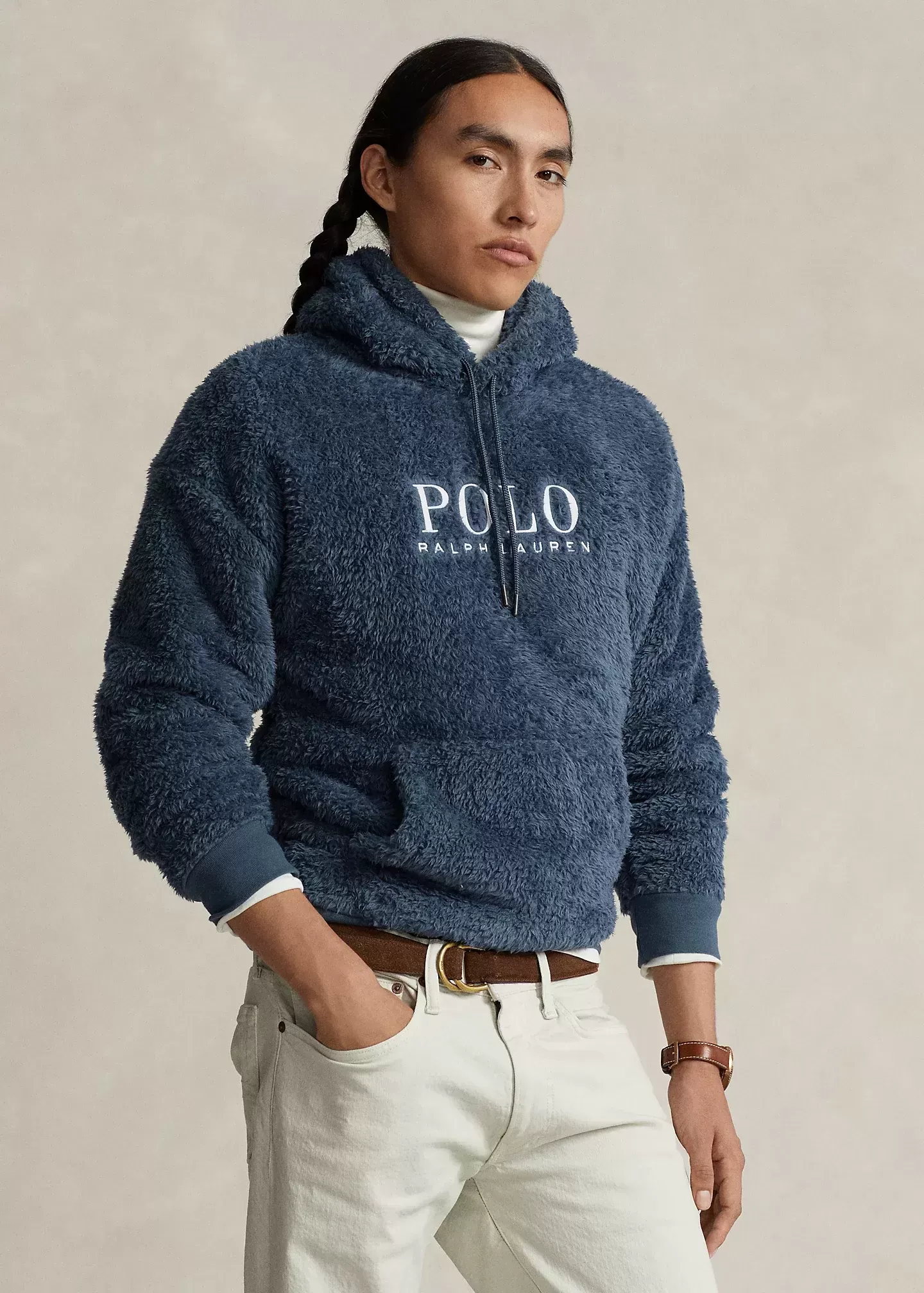 In addition to our signature Pony, this high-pile hoodie features our logo embroidered at the front.