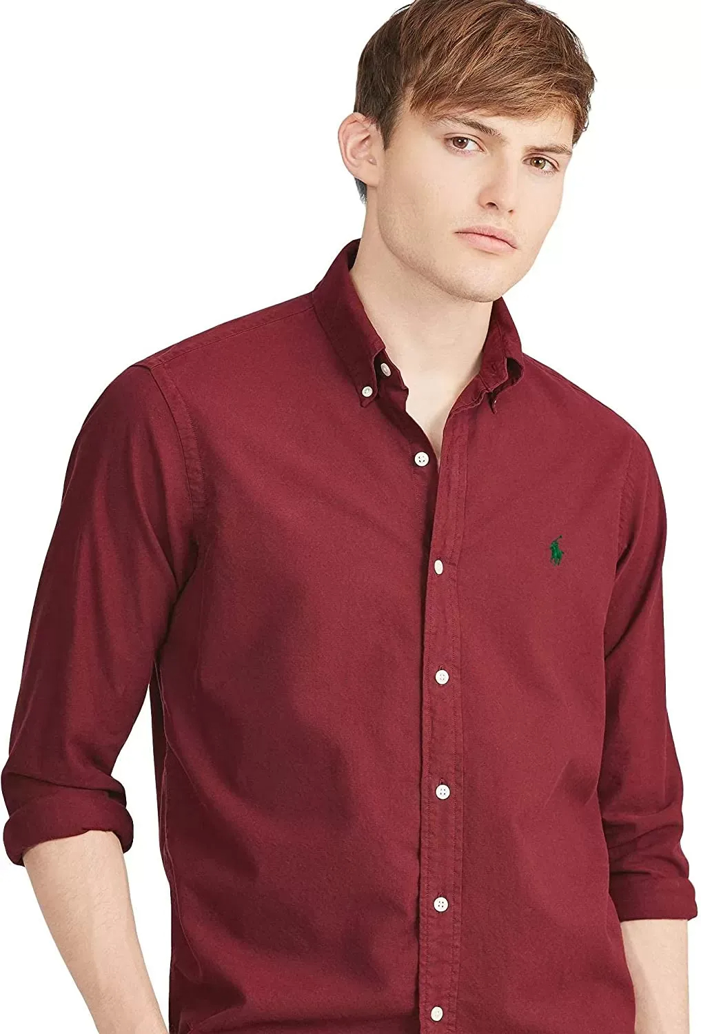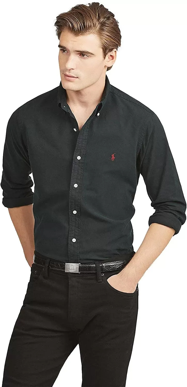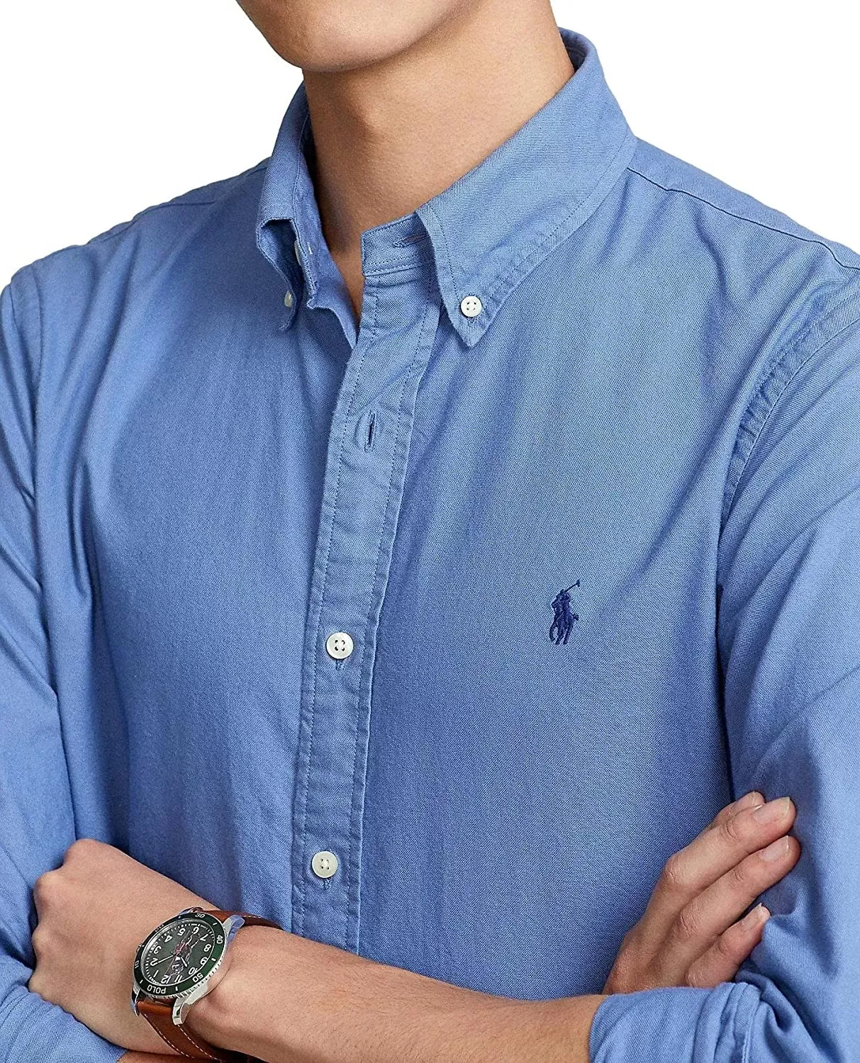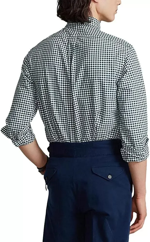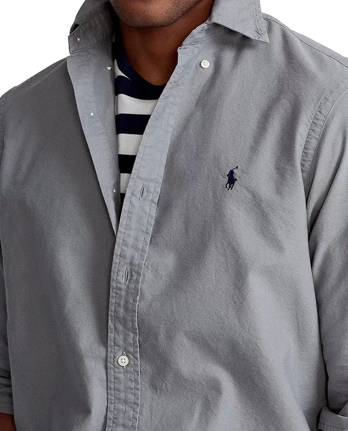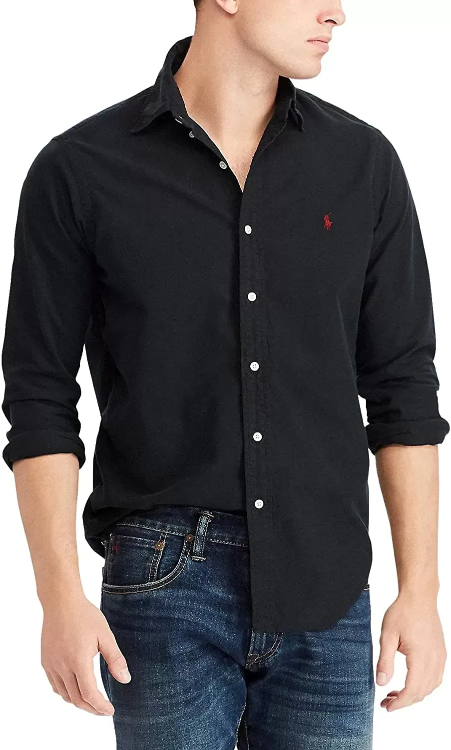 • Button-down point collar. Buttoned placket. Long sleeves with buttoned barrel cuffs.
