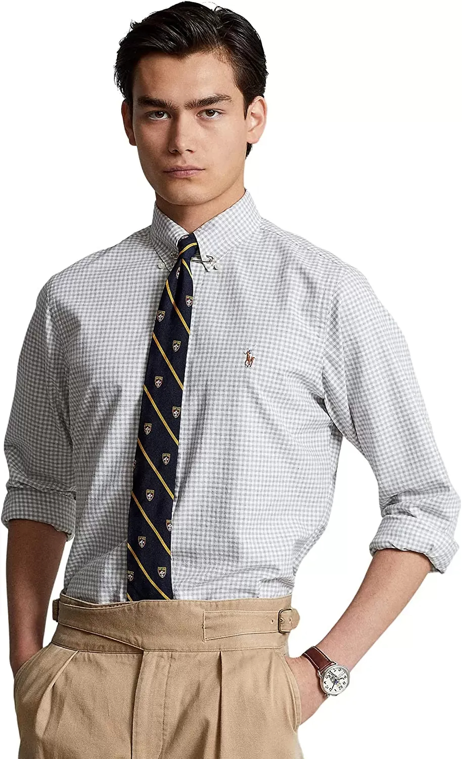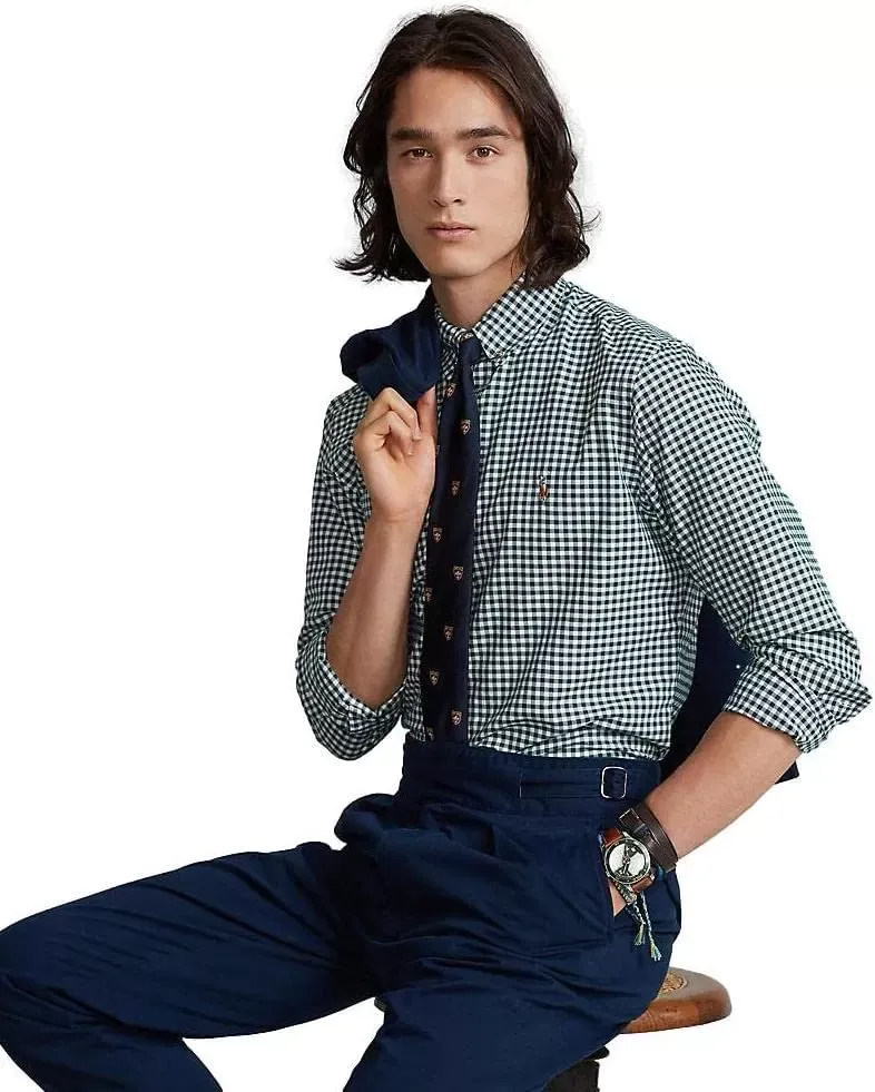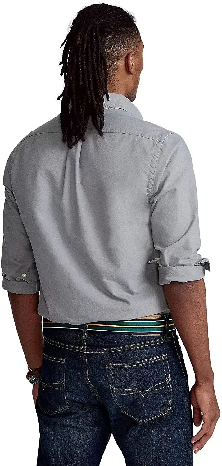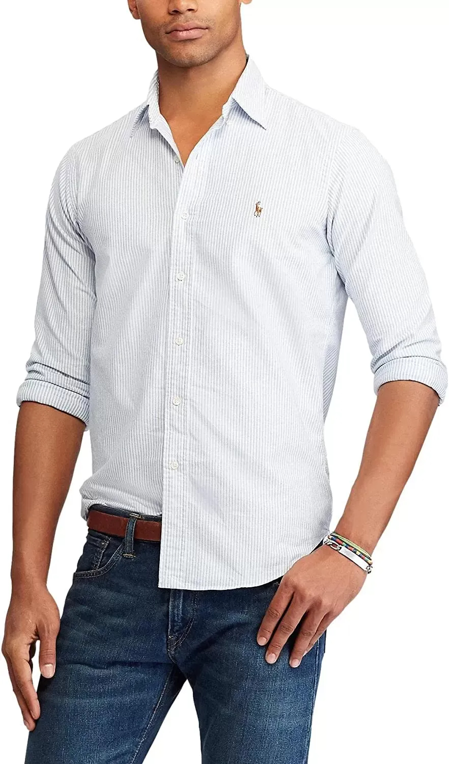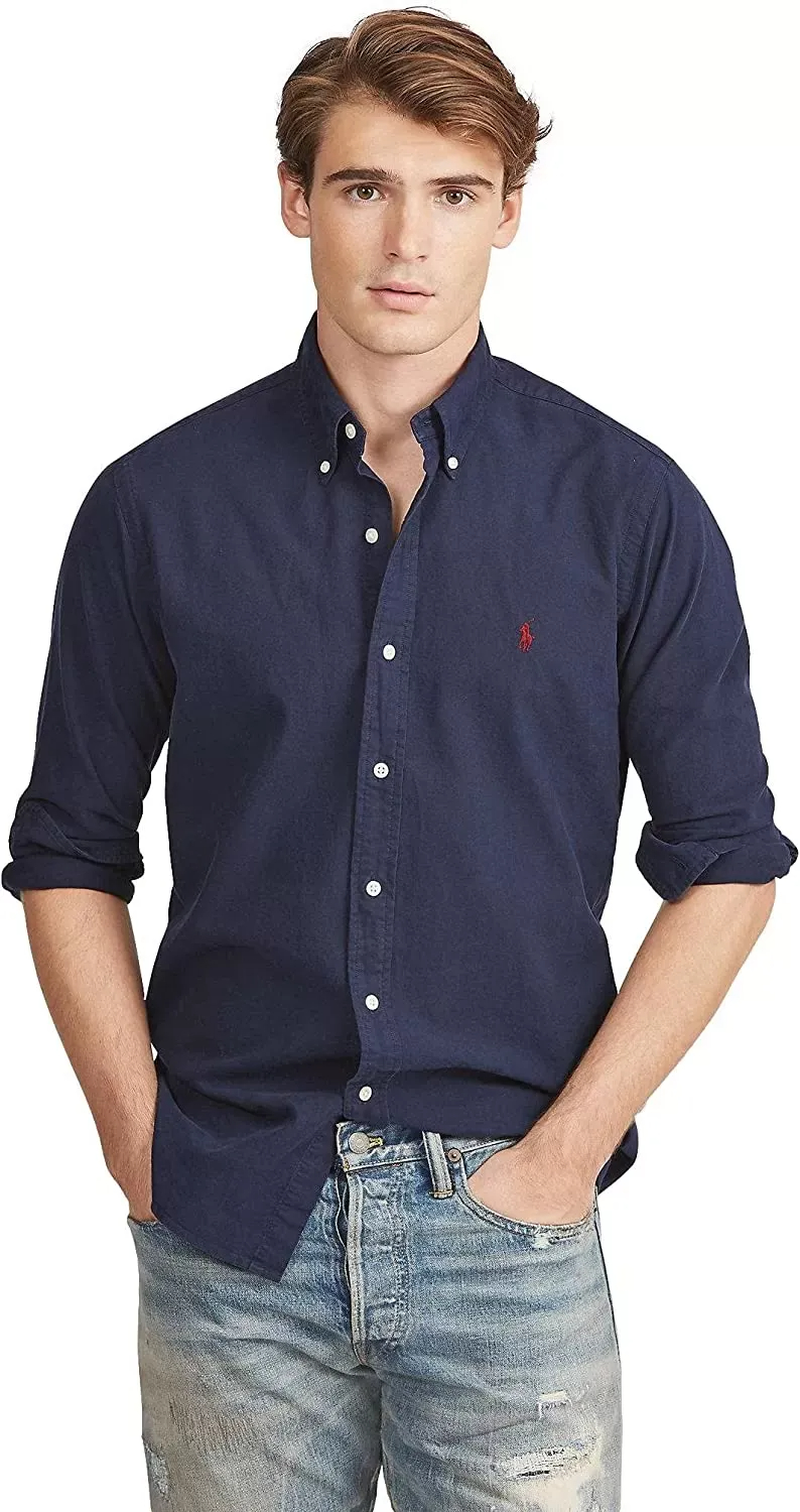 • Button-down point collar. Buttoned placket. Long sleeves with buttoned barrel cuffs.