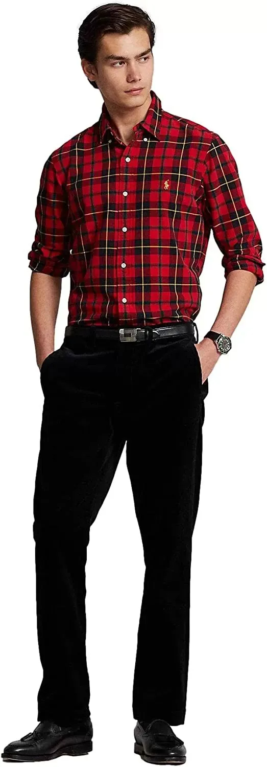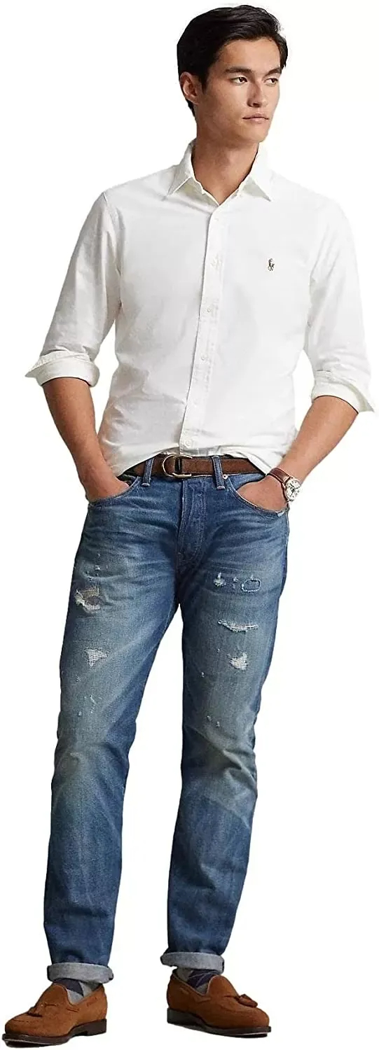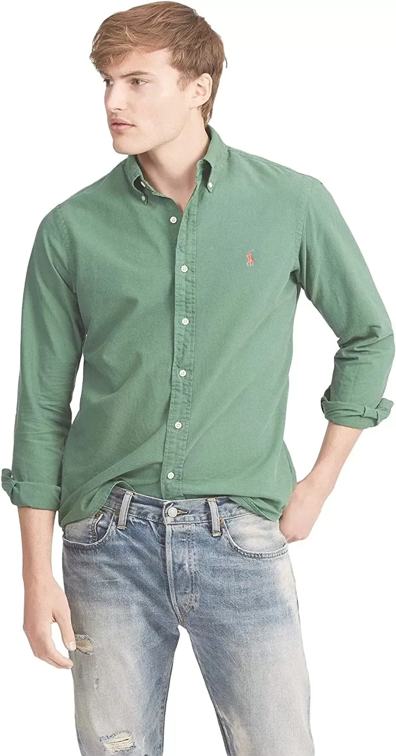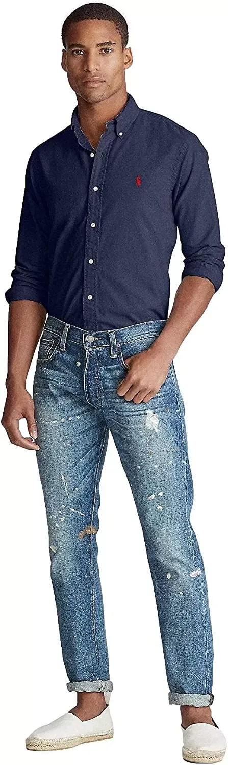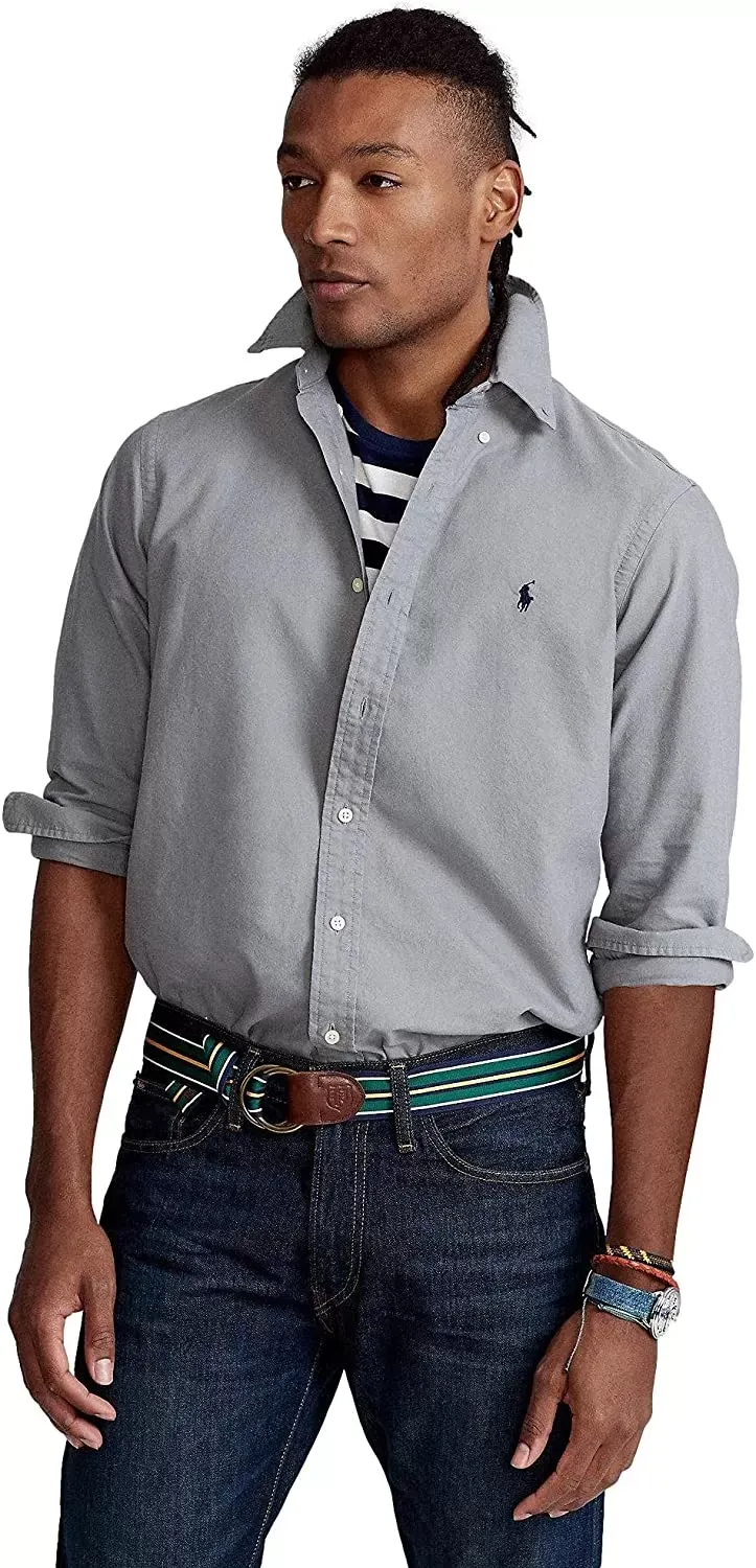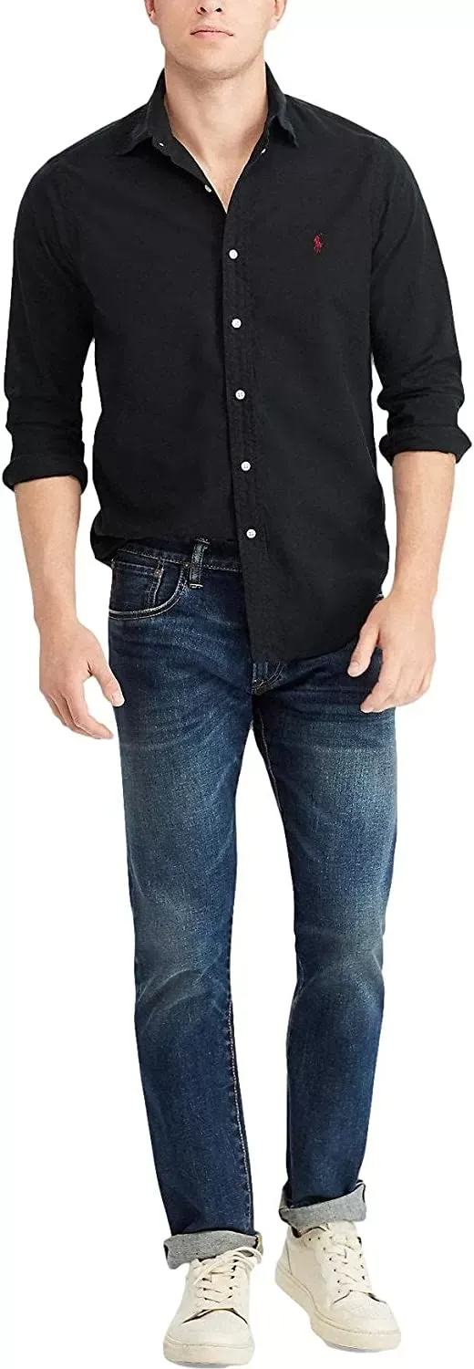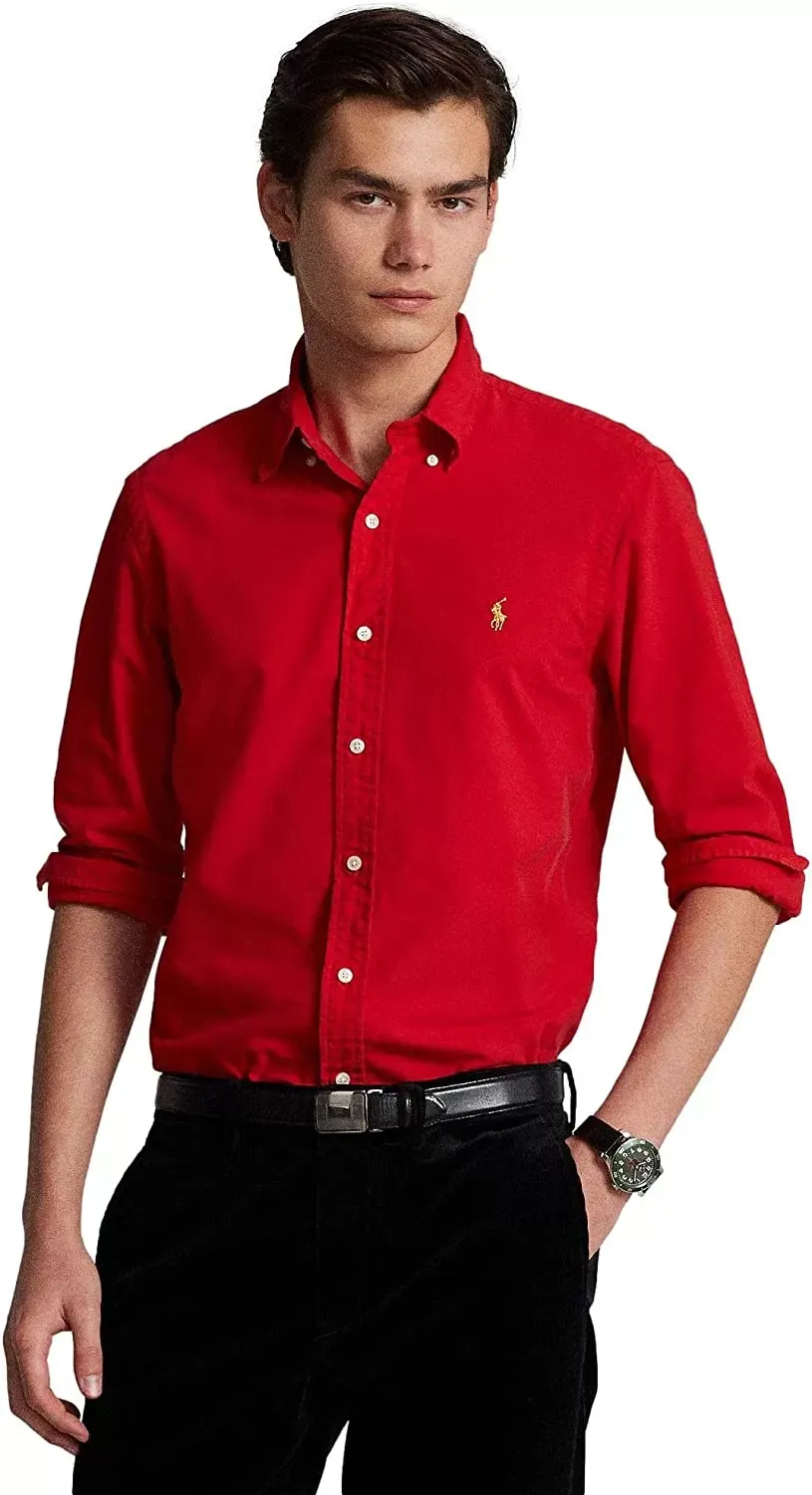 • Button-down point collar. Buttoned placket. Long sleeves with buttoned barrel cuffs.