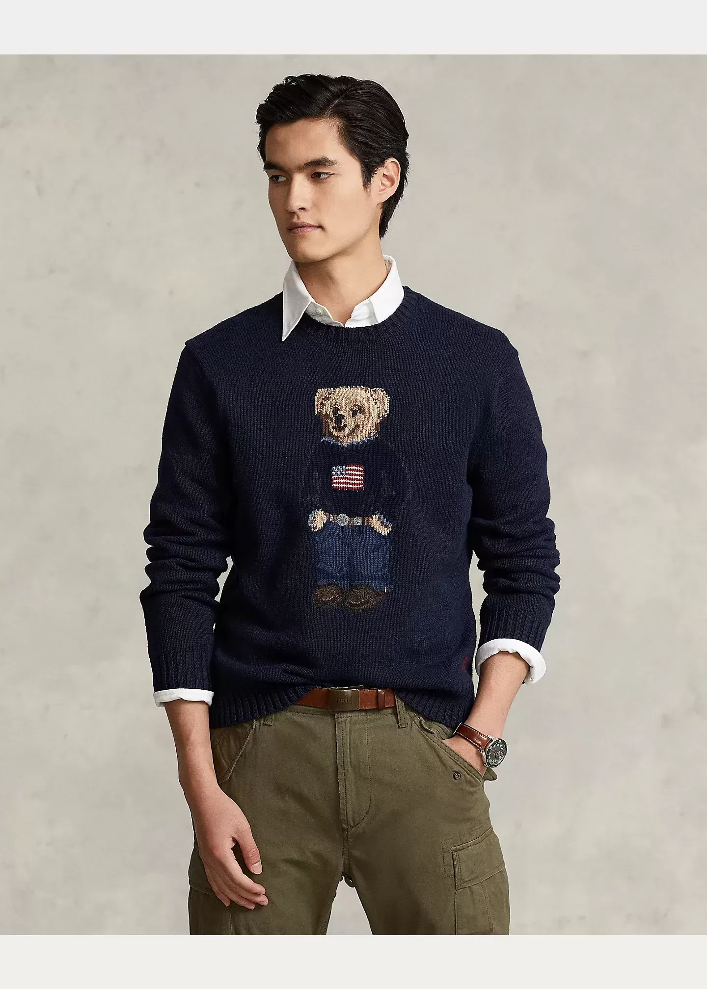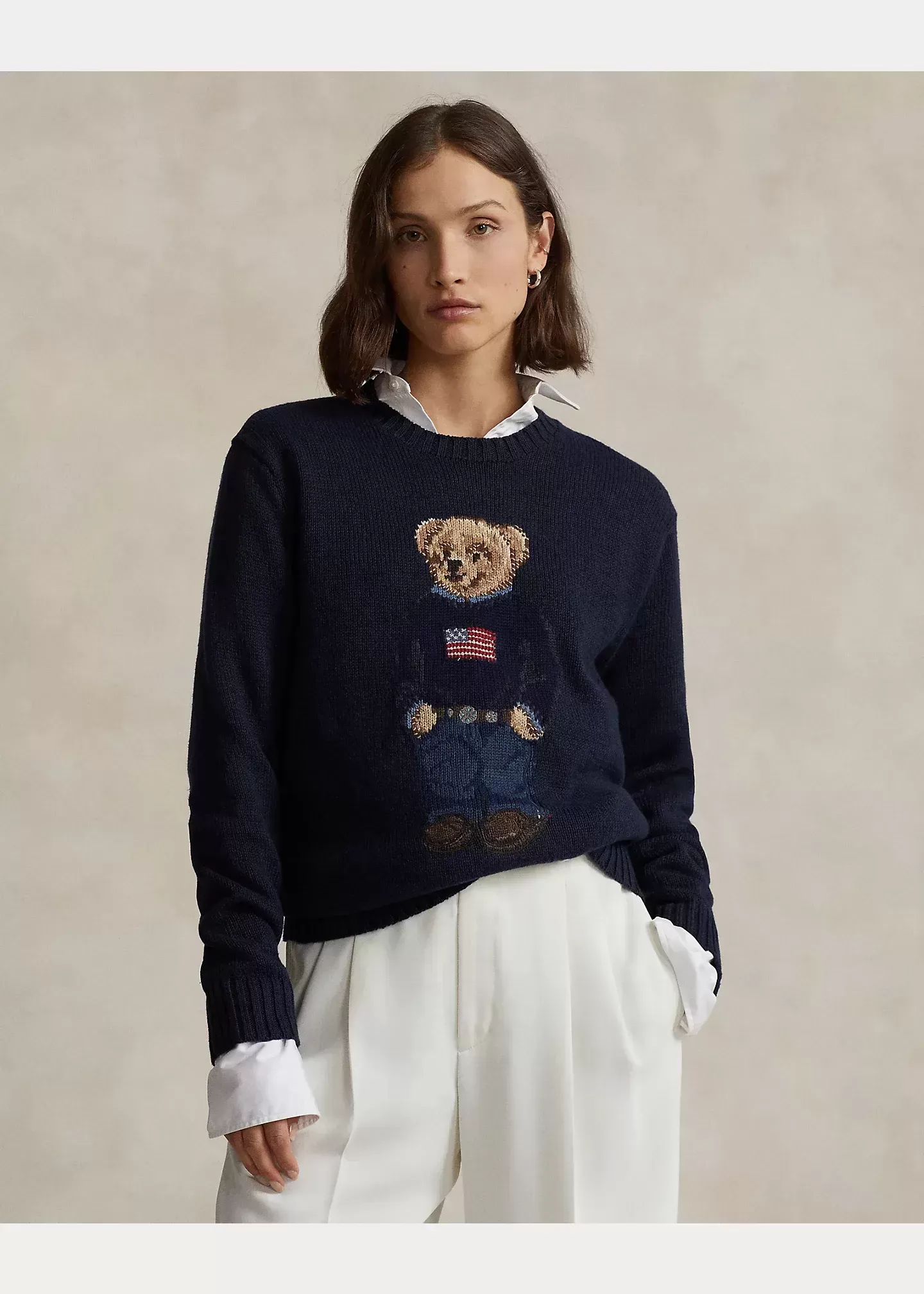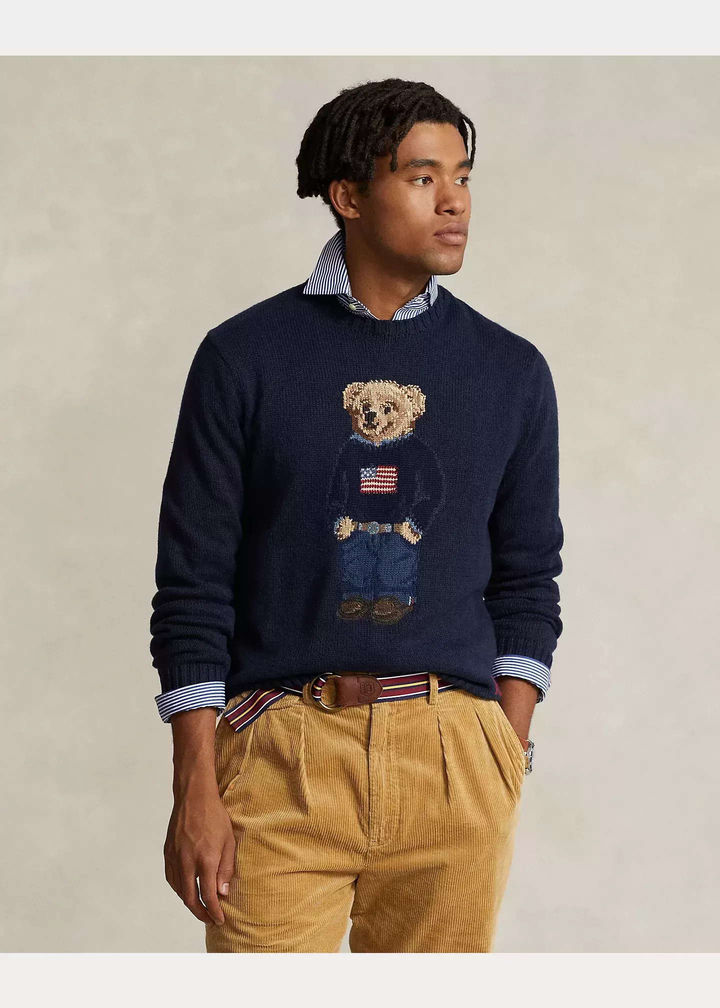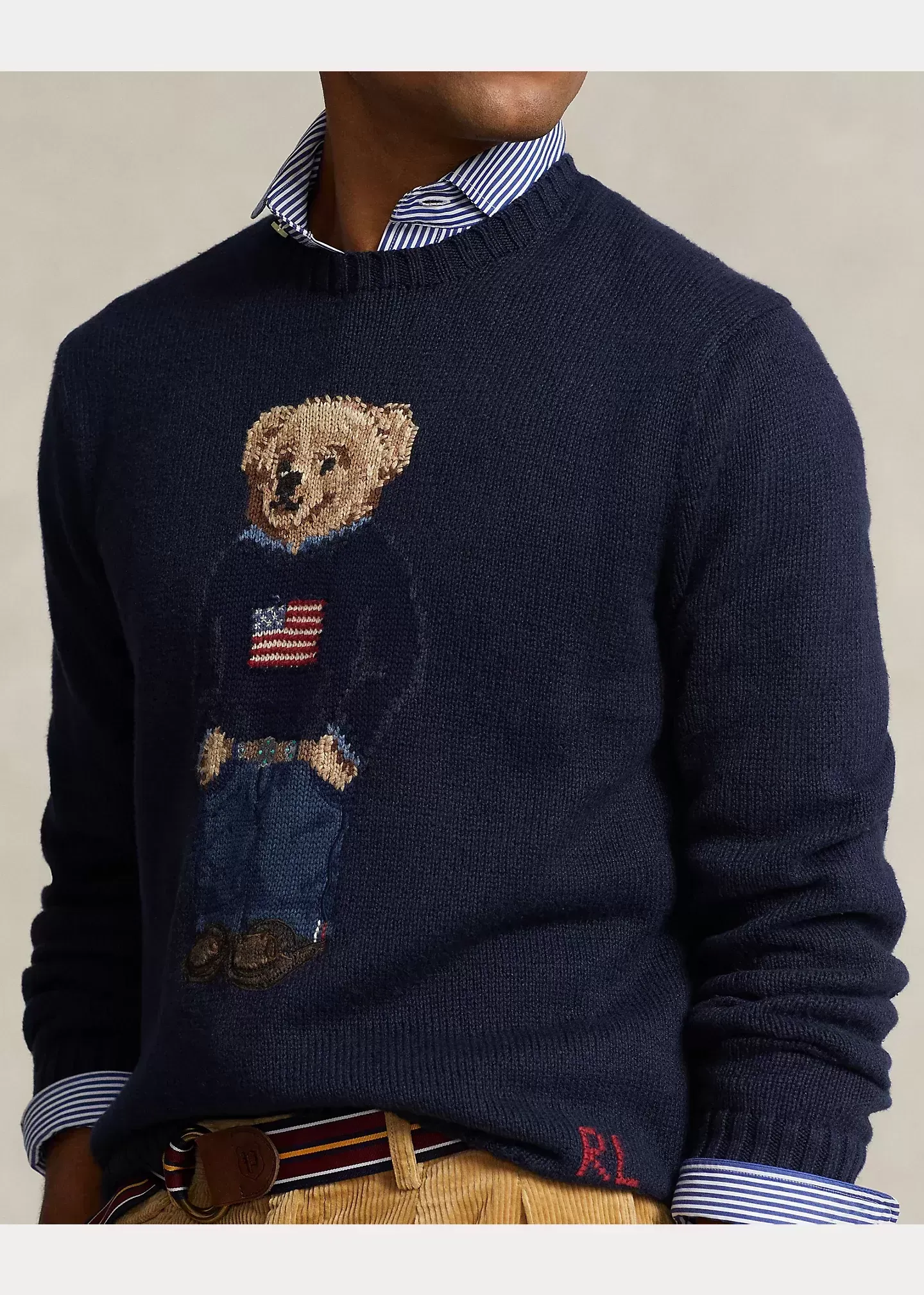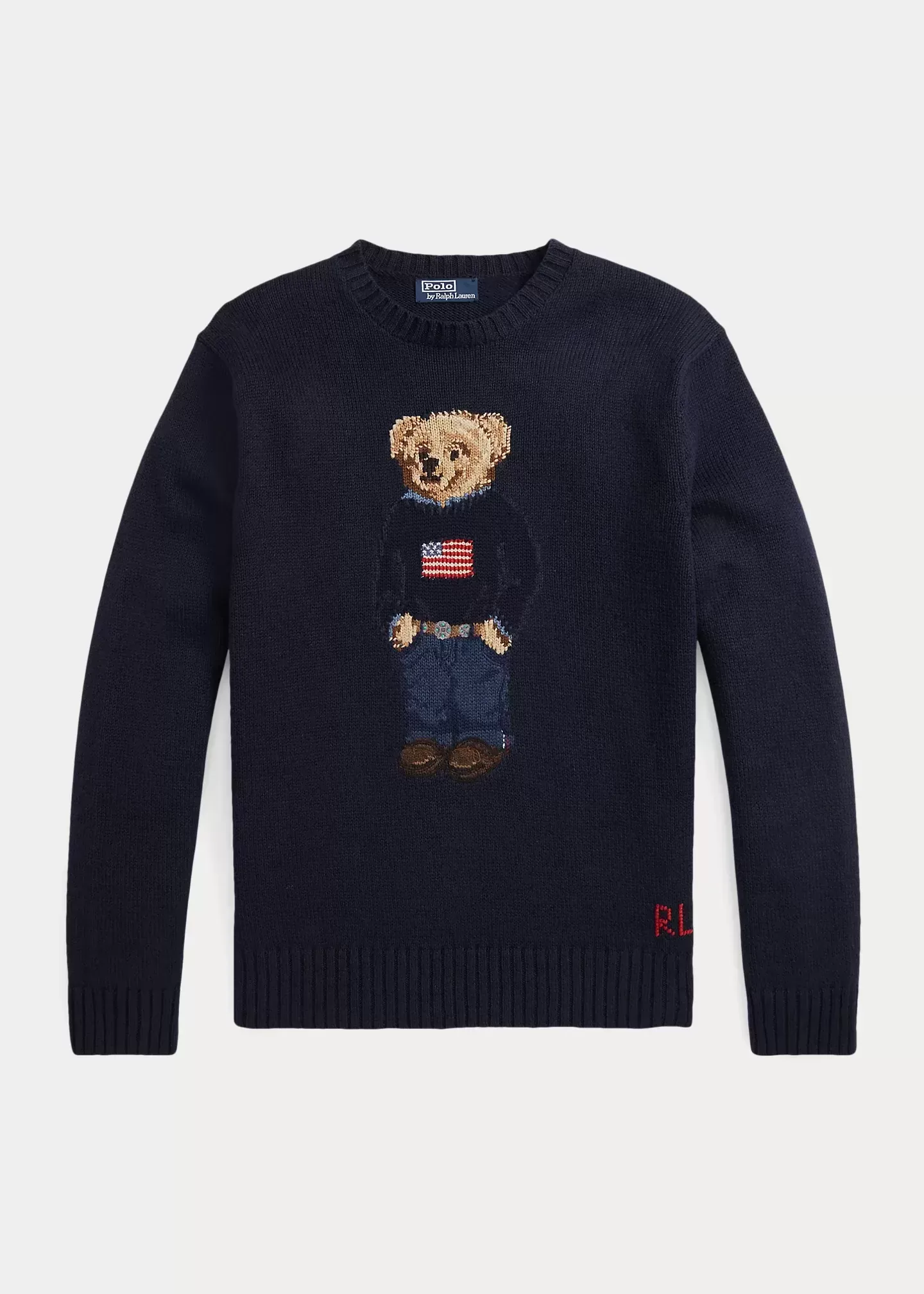An icon sporting an icon, our signature Polo Bear wears the Ralph Lauren flag sweater in this unisex cotton-linen layer.