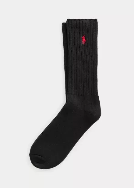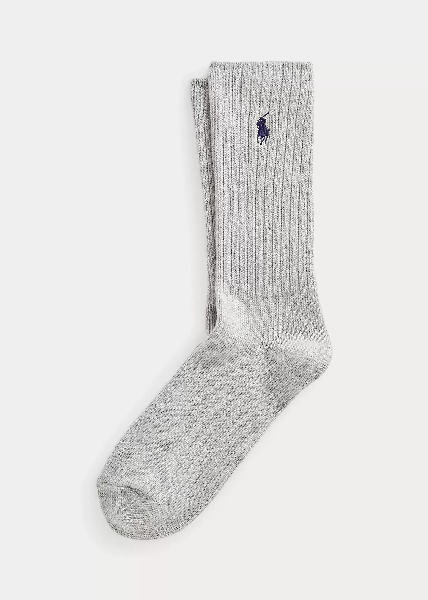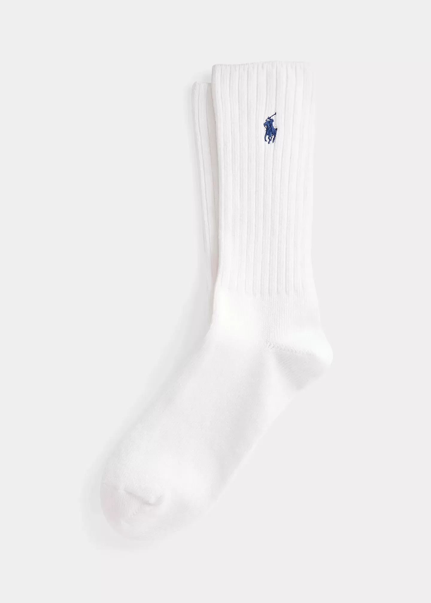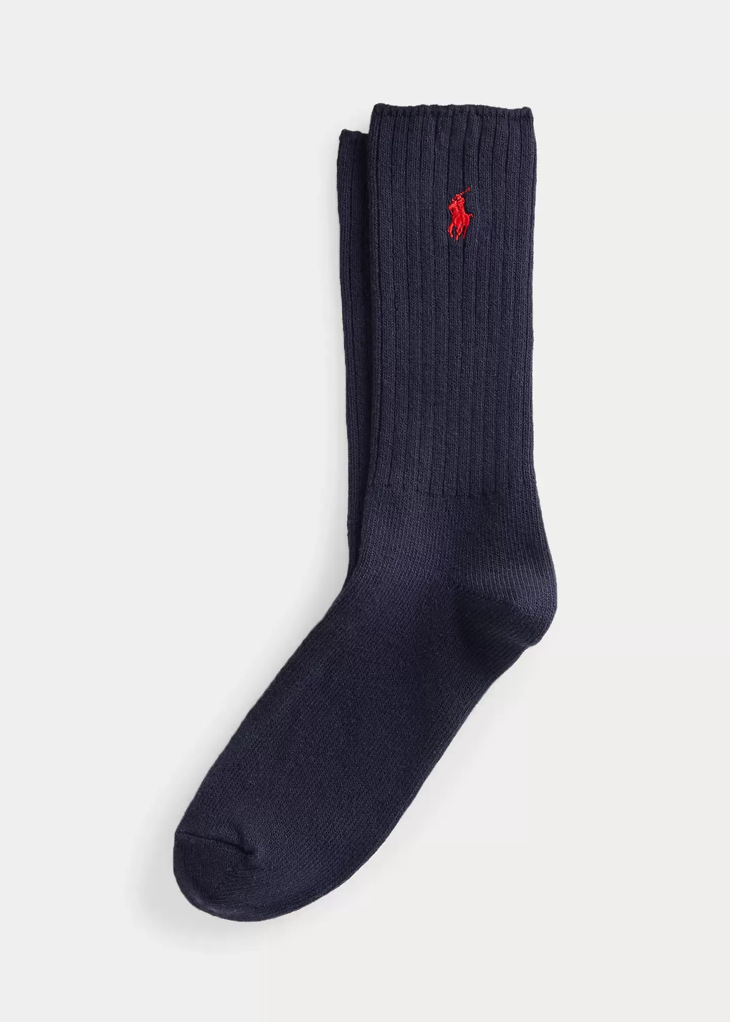 Made with a touch of stretch for comfort, these cotton-blend crew socks are finished with Ralph Lauren’s signature embroidered Pony.
