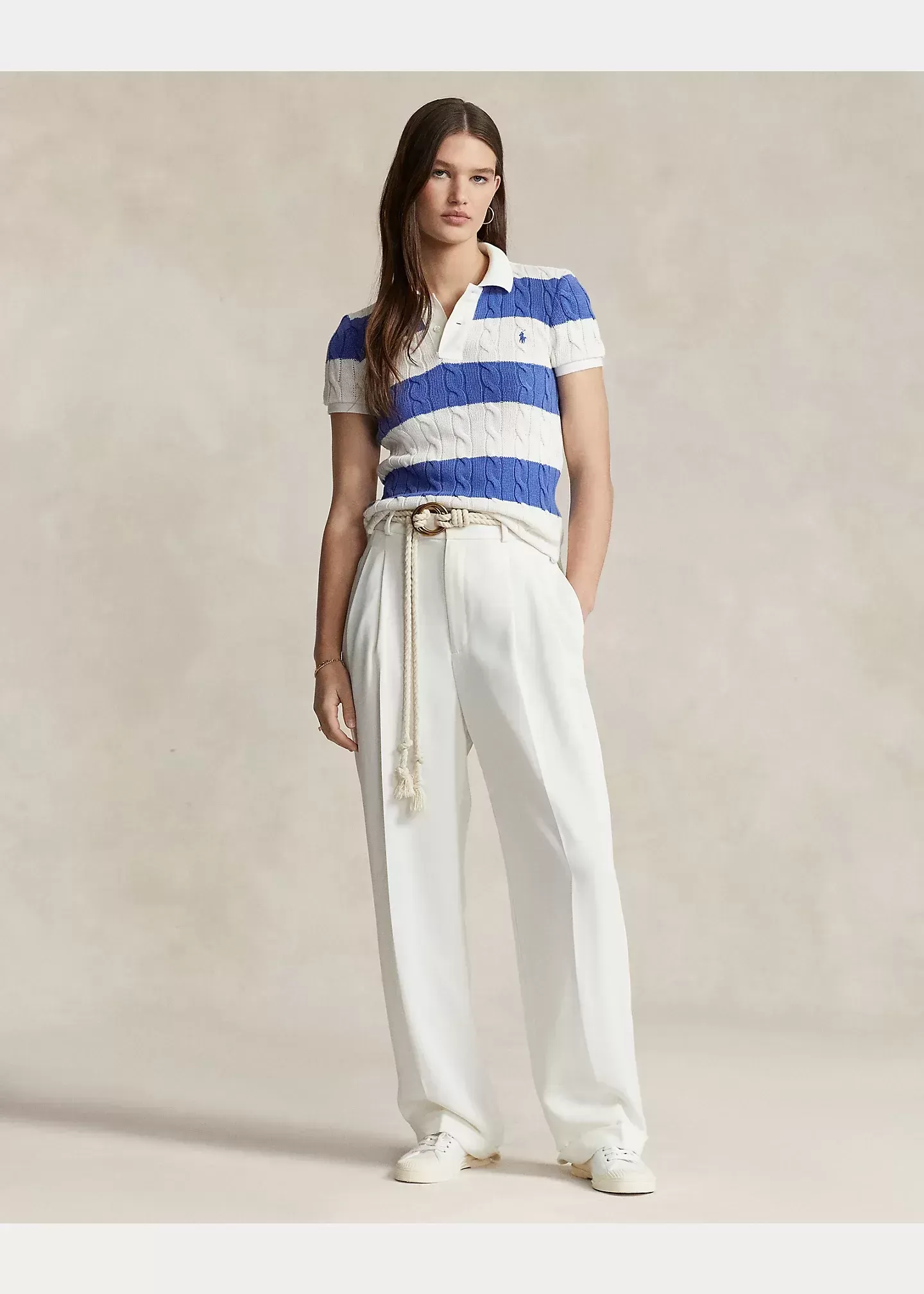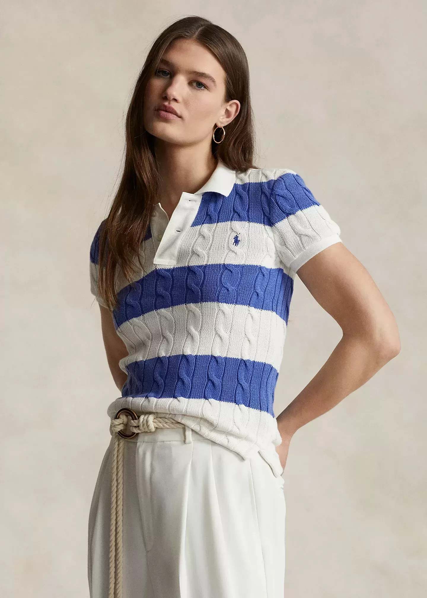 Featuring our signature cable-knit construction and a slim silhouette, this Polo shirt is defined by wide contrast stripes and meticulously embroidered with our signature Pony at the left chest.