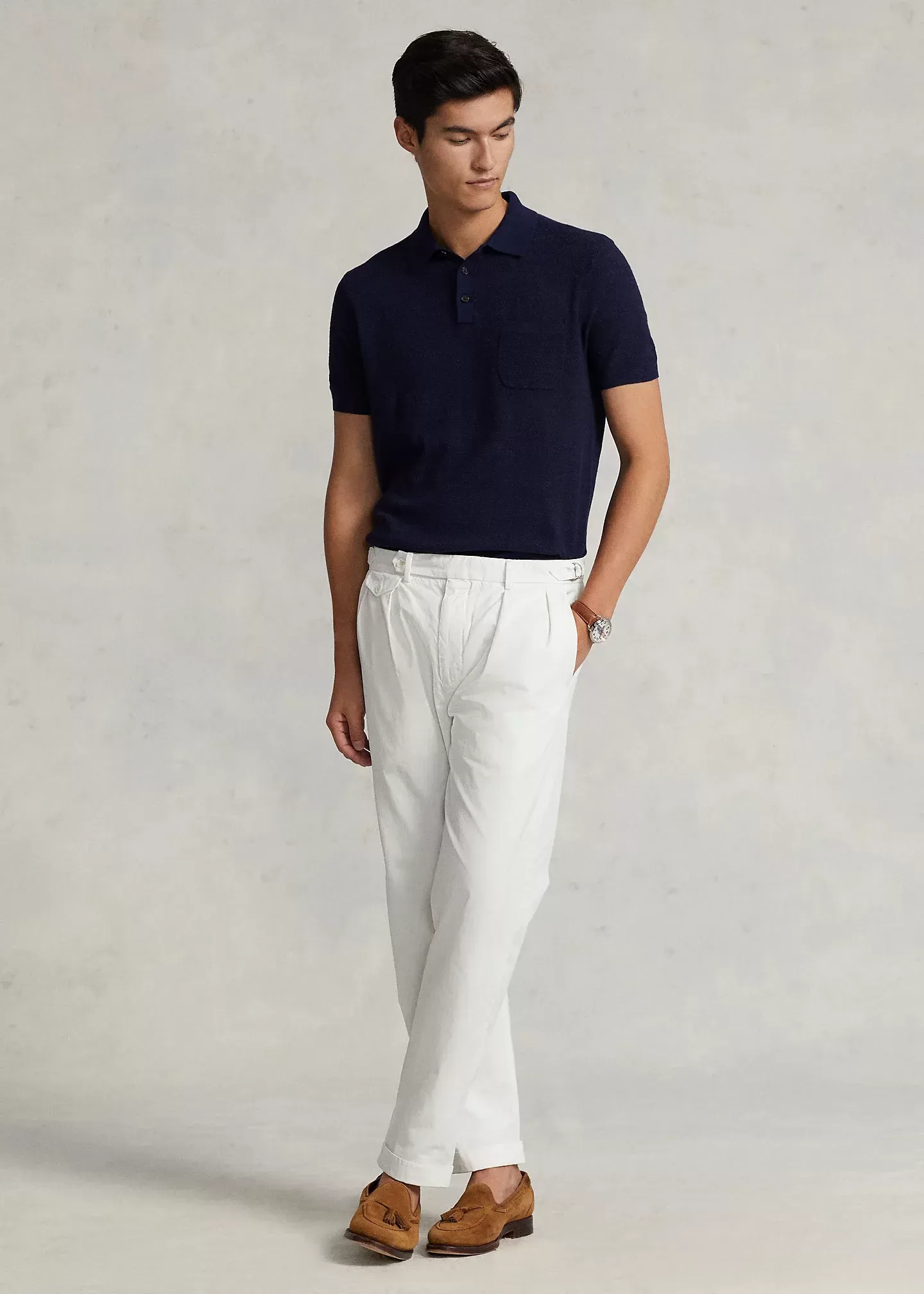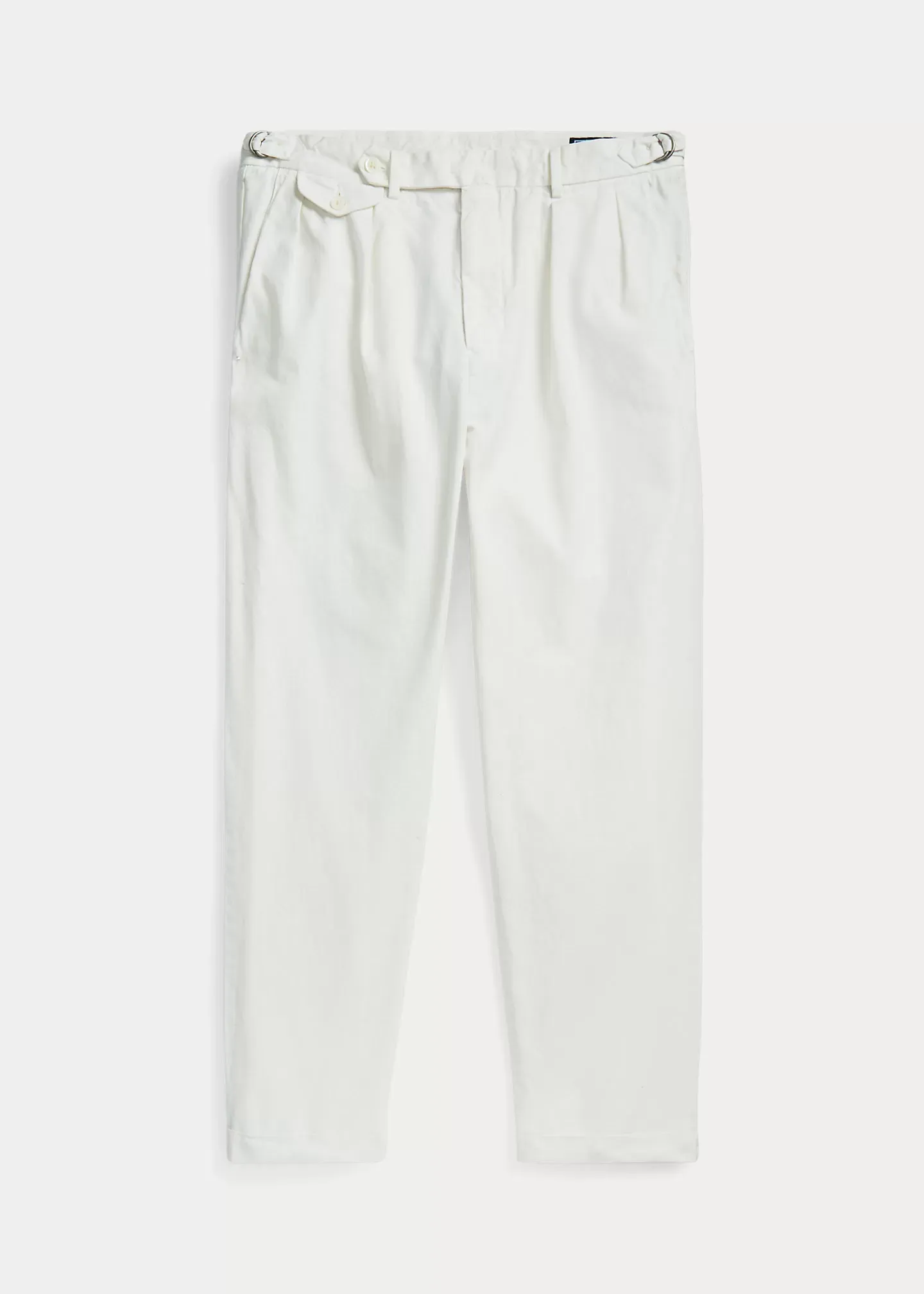 In our featherweight cotton twill, these pleated trousers are garment-dyed for a relaxed look and finished with genuine mother-of-pearl buttons. Ralph Lauren partners with Better Cotton™ to improve cotton farming globally. Better Cotton trains farmers to use water efficiently, care for the health of the soil and natural habitats, reduce use of the most harmful chemicals and implement the principles of decent work.