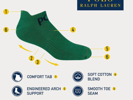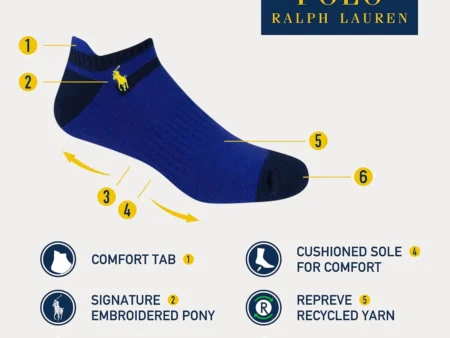 POLO RALPH LAUREN Men’s Classic Sport Americana Sneaker Liner Socks – 3 Pair Pack – Non-Slip Heel