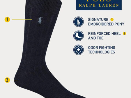 Polo Ralph Lauren Men’s Cotton Ribbed Dress Crew Socks -3 Pair Pack-Soft and Lightweight Cotton Comfort
